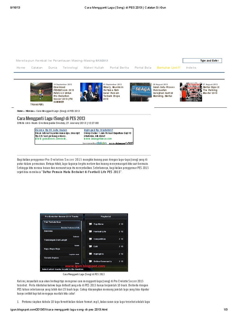 Cara mengganti lagu di pes 2013.